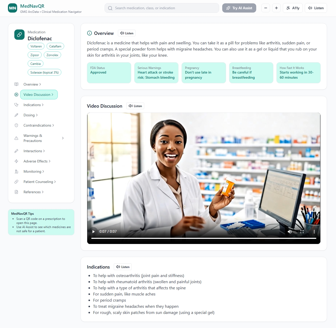 MedNavQR delivers patient-friendly medication guides directly to any device via QR code. Reduce medication errors, improve adherence, and empower patients by translating complex clinical data into simple, actionable information.